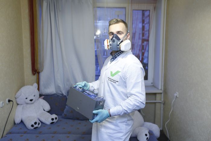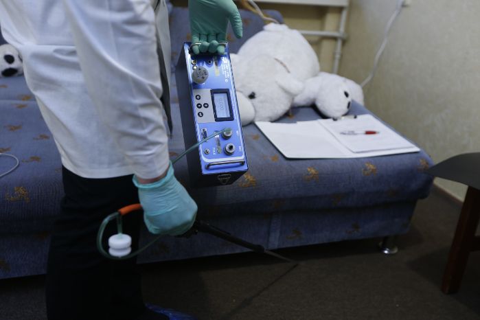 Специалист произведет замер концентрации паров ртути по всему помещению для выявления загрязненных мест.
